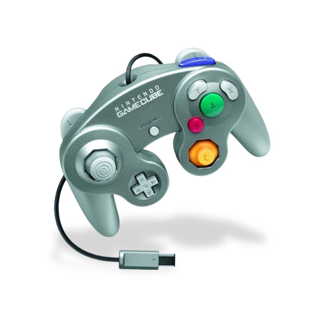 The definitive controller for competitive and retro gaming! The Platinum/Silver Nintendo GameCube Controller is the ergonomically precise gamepad renowned for its unique button layout, making it the controller of choice for classics like Super Smash Bros. Melee and Mario Kart: Double Dash!!.